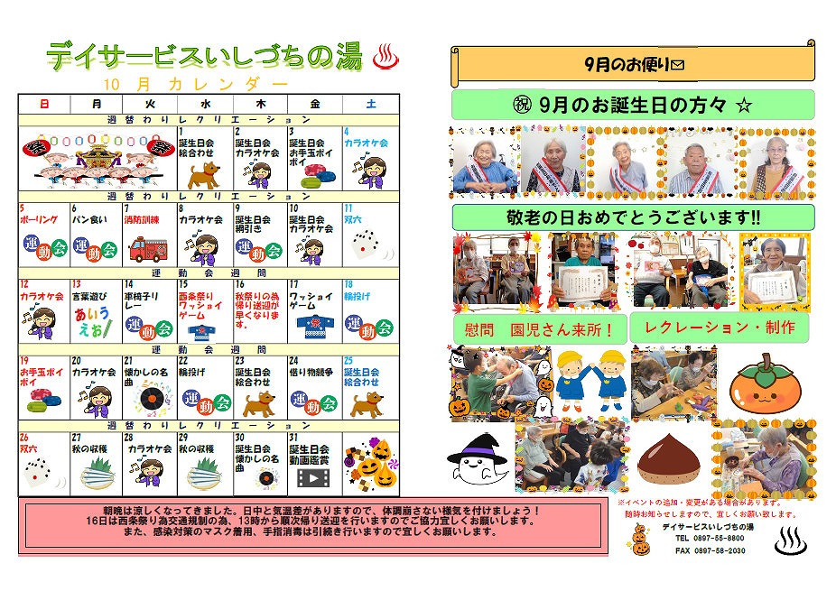 9月は、敬老の日イベント、園児さんの慰問などお楽しみいただきました。