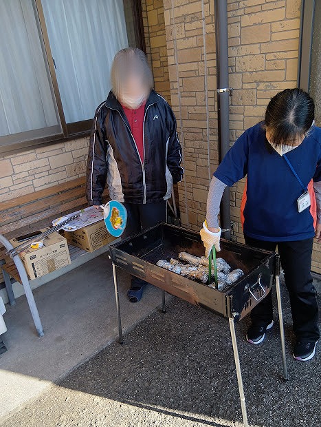 さつま芋はデイの畑で育てたものを、ご利用者様に掘ってもらい、焼き芋にしました。