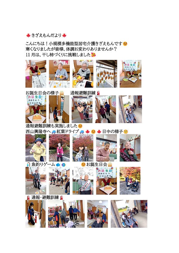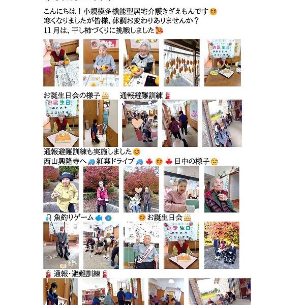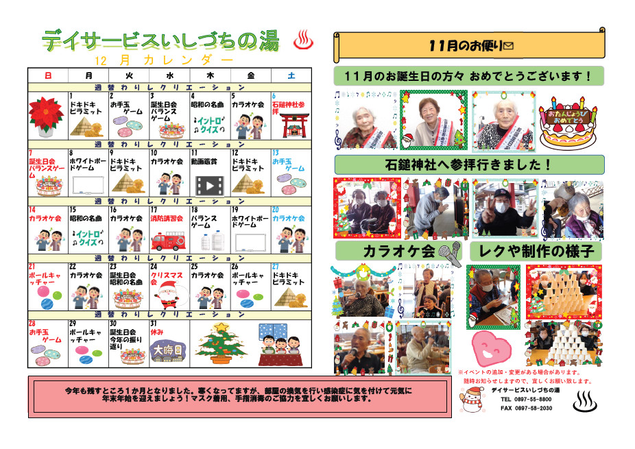 11月は、石鎚神社参拝、カラオケ大会、レクレーションや制作などお楽しみいただきました。