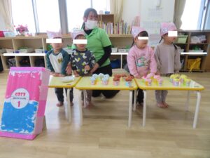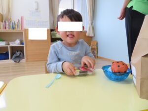その後、きりん組さんもお買い物をして、お買い物をしたものを食べました★