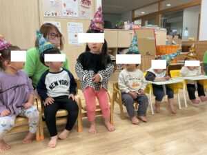 2.3月のお誕生日会🎂ゲームが大盛り上がり!!お誕生日のお友だちの顔の大パネル(笑)