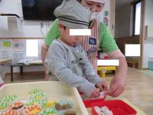 実際に給食を詰めてお弁当屋さんごっこもしました!!