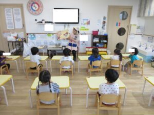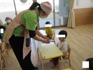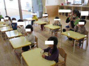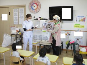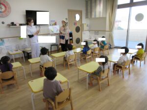 その後、栄養士の先生から三食食品群のわかりやすいお話をしてもらい