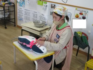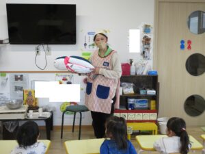 その後、栄養士の先生から三食食品群のわかりやすいお話をしてもらい